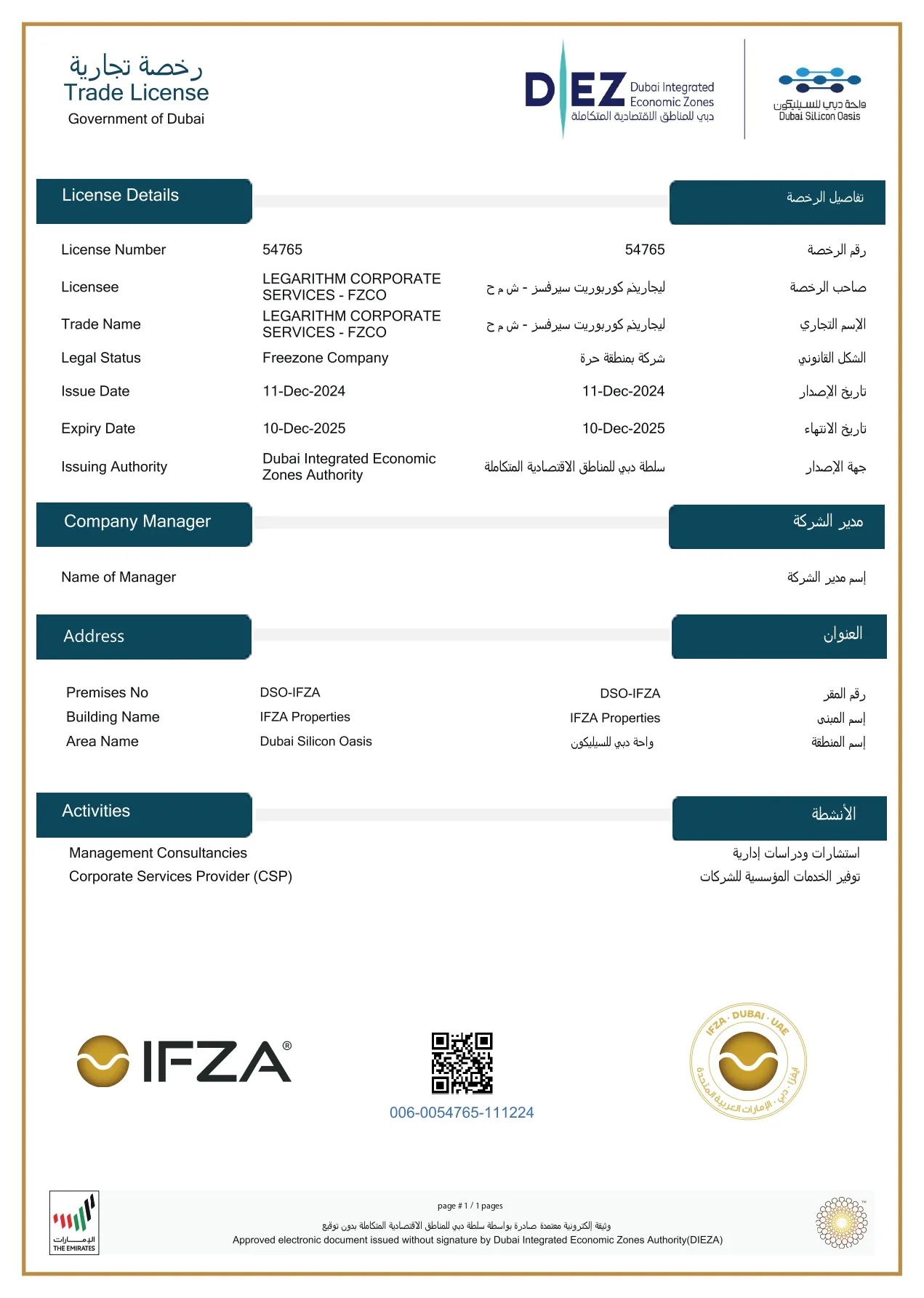 We are registered private consultancy of corporate services in the UAE. No intermediaries, no middlemen, only transparent pricing and real experience.